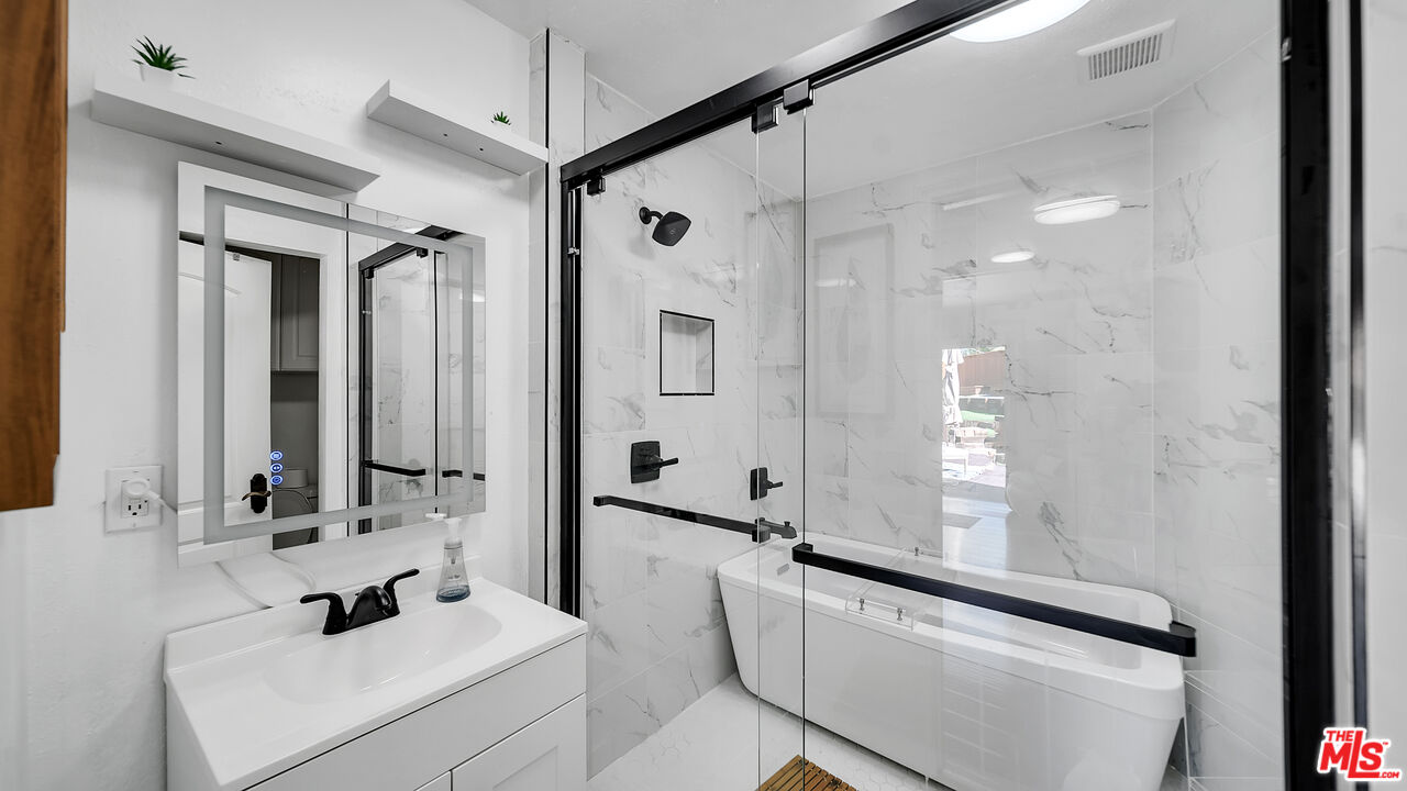 This beautifully updated South of the BLVD home boasts a perfect blend of modern amenities and classic charm, offering 5 spacious bedrooms and 4 bathrooms with INCOME earning potential. A SEPARATE bedroom and Full bathroom with a private entrance, perfect for an in-law suite or can easily be made into an ADU. An inviting foyer leads to you to an elegant staircase, beaming with natural light to fill every room, creating a warm and welcoming atmosphere. The gourmet kitchen is a chef's dream, featuring sleek stone countertops, stainless steel appliances, and ample cabinetry, ideal for both cooking and entertaining. The spacious living room provides the perfect space for relaxing or hosting guests, with large sliding glass door leading to the sun-soaked balcony, offering picturesque views of the surrounding neighborhood. The tastefully updated Primary suite includes a fully remodeled Bathroom with white stone tiles and elegant vanity. Outside, the private backyard is a serene retreat, complete with a patio for al fresco dining, lush greenery, and plenty of space for outdoor activities. A family room with full wet-BAR is the perfect space to relax! This home is ideally located near top-rated schools, The Topanga Village mall offering - shopping, dining, and more! Close to multiple beautiful parks and trails Woodland Hills has to offer. Property does not come Furnished.